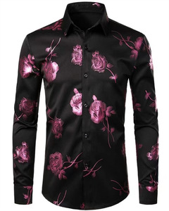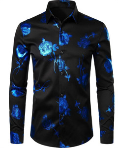 国境を越えた対外貿易卸売りの人気トレンド韓国版新型秋冬長袖砕花シャツ男性カジュアルプリントシャツ