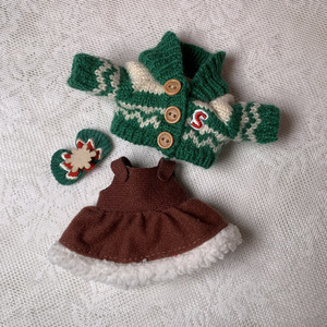 ウィンターベルの小さな服(頭の花の緑のコート)