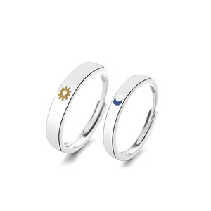 バレンタインデーのシンプルな太陽の月のカップルの指輪の開口部は戒子の復古の指輪の日月の夜光を調節します。