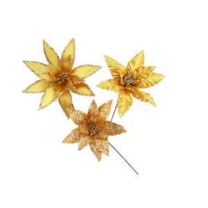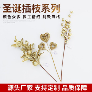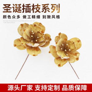 ゴールデンクリスマスフラワーステムクリスマスアクセサリーリーフアクセサリーパウダーフラワーヘッドバンドスパンコールクリスマスフラワーヘッド