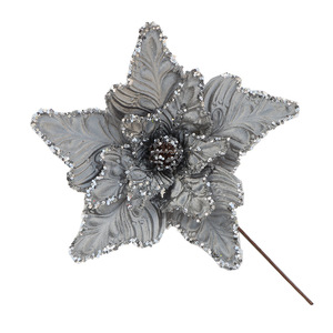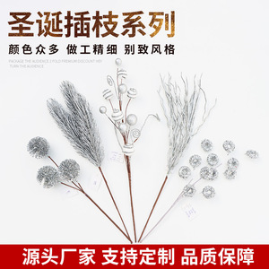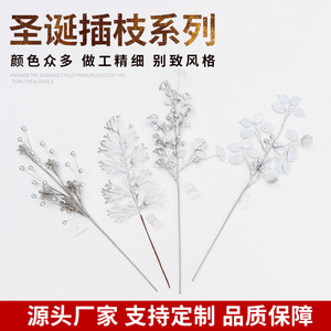 クリスマスアクセサリー銀色の花の頭のクリスマスの葉の挿し木白いクリスマスの花の粉のクリスマスの花のスパンコール