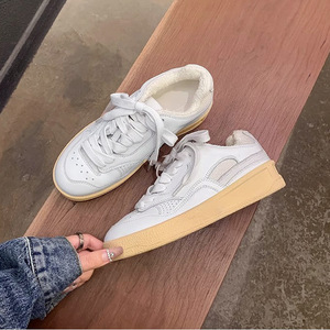 ソラインと同じソウル高校生の白い靴 ~ 丸首ひもの厚い底のスポーツとレジャーの白い靴の女性の板の靴