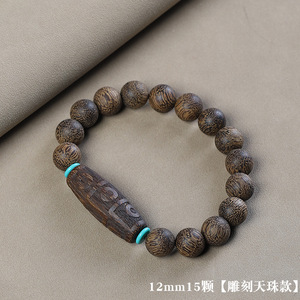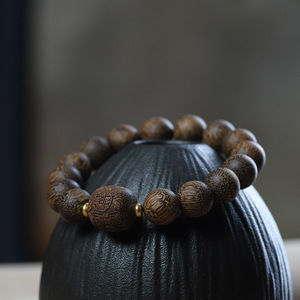 ベトナム芽庄白奇楠手串単輪異形珠沈水老料沈香文は男女の金仏珠のブレスレットを遊んでいます。