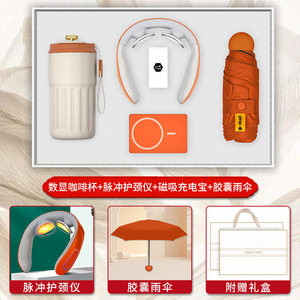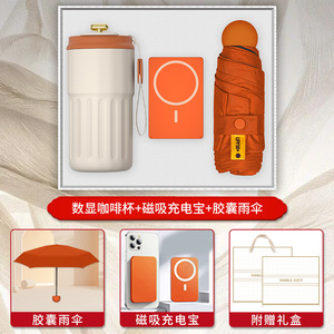 デジタルコーヒーカップ + ネックプロテクター + インターネットセレブの傘 + 磁気パワーバンク - オレンジ