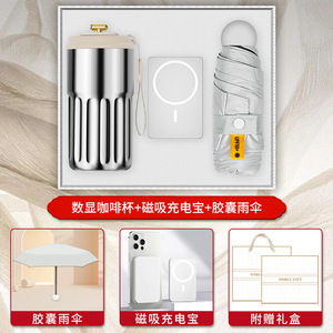 デジタルコーヒーカップ + ネックプロテクター + インターネット有名人の傘 + 磁気パワーバンク - ホワイト