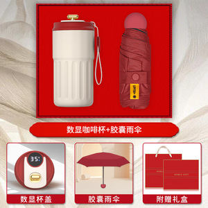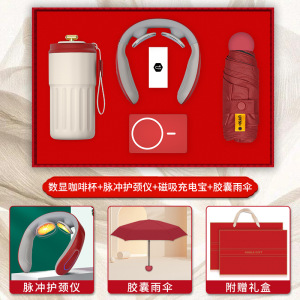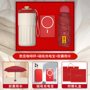 デジタルコーヒーカップ + ネックプロテクター + インターネット有名人の傘 + 磁気パワーバンク - レッド
