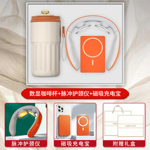 デジタルコーヒーカップ + ネックプロテクター + 磁気パワーバンク - オレンジ