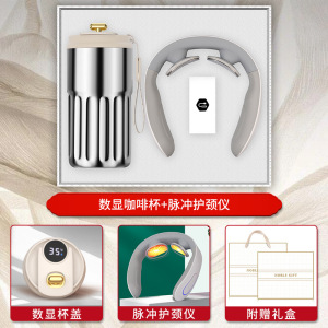 デジタルコーヒーカップ + ネックプロテクター + 磁気パワーバンク - ホワイト