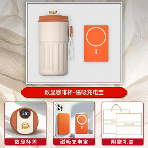 デジタルコーヒーカップ + 磁気パワーバンク - オレンジ