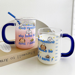 冬のホットミルクカップ高ホウ素シリコンガラスカップ高颜値女性ストロー朝食カップかわいいスケール豆乳カップ