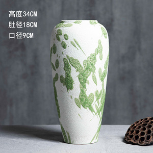 景徳鎮の陶磁器の花瓶の置物の客間の生け花の新しい中国式の玄関の装飾品の花器の復古の太い陶缶の植木鉢
