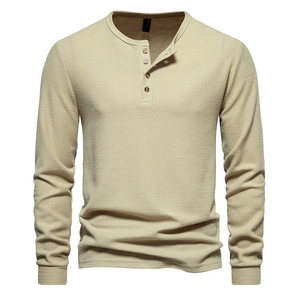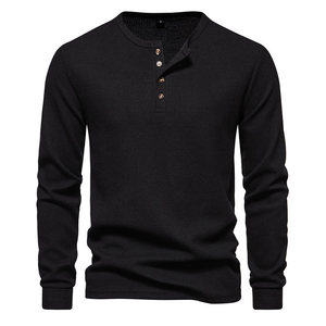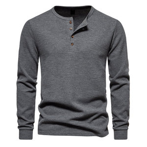 秋冬の新型長袖tシャツメンズ四粒バックルワッフルヘンリーネックメンズ長袖tシャツボトムシャツ