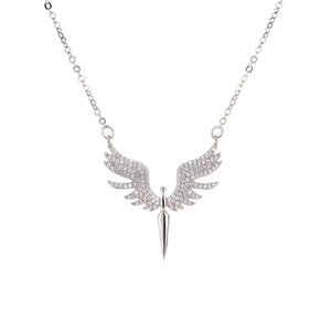 シルバーチタン钢アクセサリーセット热い贩売守护天使の翼セットネックレスイヤリングリングカラードリル色落ちしません