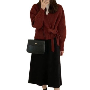 フランスのレトロなvネックのストラップの気質のニットの上着の秋冬の新型のゆったりしている怠惰な風のファッションのセーターの女性の外