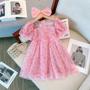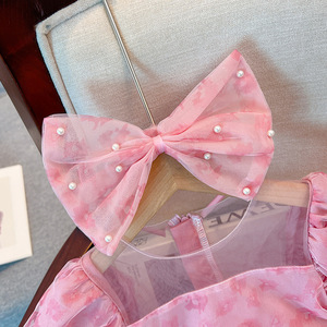 女の子半袖ワンピース夏服新型超アンドロメダ赤ちゃんプリンセススカート蓬蓬蓬紗丸襟蝶結びスカート
