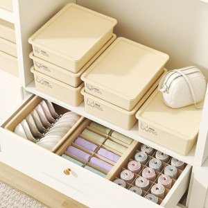 クリーム風下着靴下収納ケース蓋付きたんす家庭用寝室三合一衣類収納ボックス寮