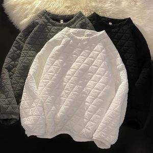 高級な菱の形の格の厚い綿の衛衣の秋冬の韓国版の新型のファッションの個性は明らかにやせて帽子の丸首の上着の女性がいません。