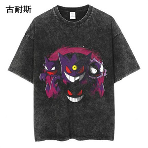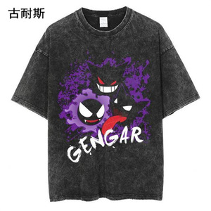 国境を越えたアメリカの水洗いは古い半袖tシャツ男2024夏の新型ゆるいファッションins潮牌卸売りをしている