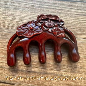 紫檀木マッサージ櫛【両面ハスの葉金】