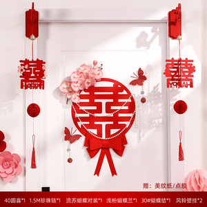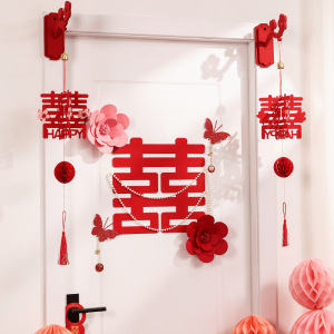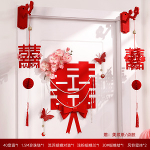 結婚部屋の配置セットネットの赤いドアの上で喜字の門の楠の女性の寝室の結婚は閣の部屋の入り口のカーテンの装飾を出します。