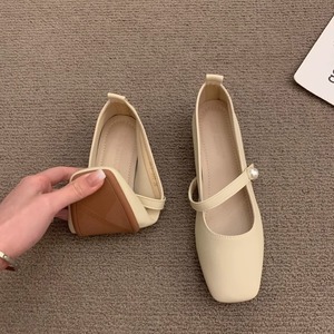 2025 メリージェーンシューズ女性の浅い口スクエアトゥ厚いヒールスカート付きおばあちゃんの靴妖精多用途ソフトソール靴小さな革靴