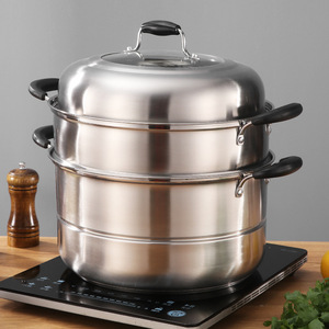 蒸し鍋304ステンレス三層厚手家庭用多機能大容量蒸煮煮込みガス電磁炉ギフト鍋