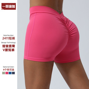 国境を越えた新型クロスV腰運動パンツ蜜桃提尻ヨガ三分ズボン女性Tラインランニングフィットネスパンツ