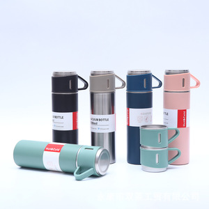 定制直供一杯三盖保温杯套装茶水分离全钢盖泡茶水杯真空直身杯