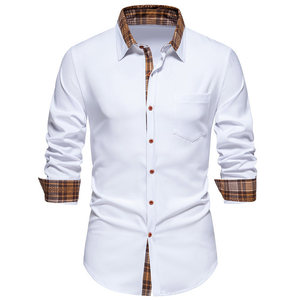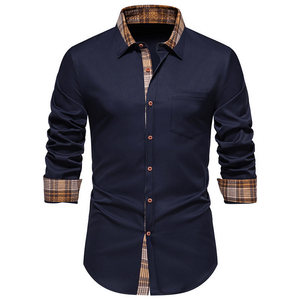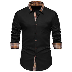 男性のシャツアマゾン春夏の新型クロスボーダーのファッションの格子は色にぶつかって男性の長袖のシャツをつなぎ合わせます。