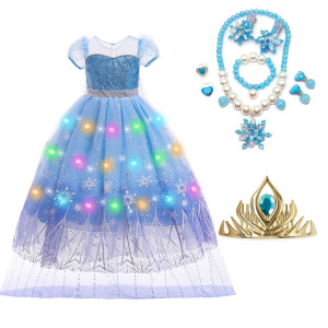 イースターの艾莎の漫画の網の糸の王女のスカートの女の子の夏服の新型の氷雪の女王の愛莎の王女のワンピース