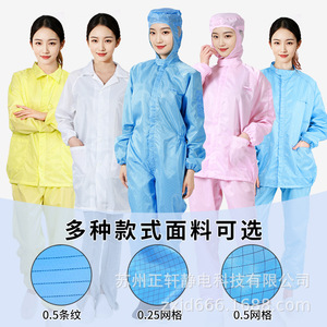 静電気防止作業服ブルー電子工場クリーン工場食品工場防塵工装クリーン労働保護セット