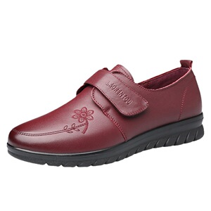 2母の靴の柔らかい底の女性の80靴のaj50の平底の老人の頭の中高年の仕事の女性の靴の黒色の丸い頭の現物