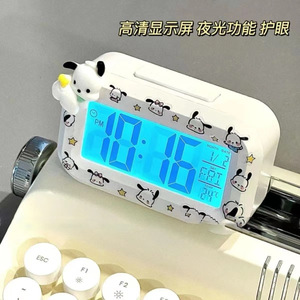 かわいいパチャ犬目覚まし時計夜光ベッドの頭の時計シンプルなアイデア多機能寮学習デスクトップ時計
