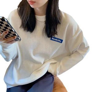 新型のパーカーの女性の長袖の純色の秋の薄いタイプの百合のワッフルの格の貼るのがゆったりしていて、やせているショートタイプのカップルの服の上着が見えます。