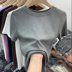 【多色オプション】高級純色マスクtシャツ女性半袖夏の新型修身がやせて見えるシャツの上着