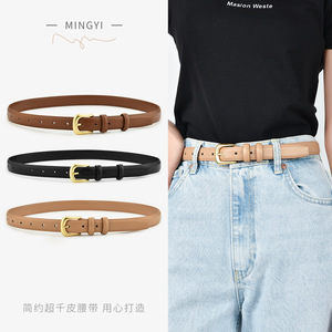 女性本革ベルト韓国版百合レトロベルト女性シンプル日常学生ジーパンカジュアルワンピース