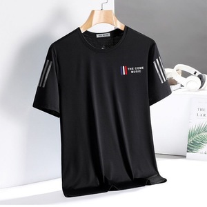 夏の男性の氷糸半袖tシャツ男性のゆるい丸首半袖tシャツの大きいサイズはシンプルで、速乾性の上着に合わせています。