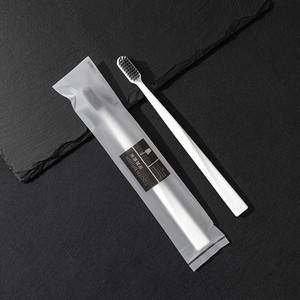 【歯科用具】PP白ブラシハンドル竹炭毛フラットテール歯ブラシ(歯磨き粉なし)