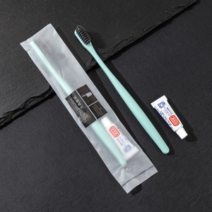 【歯科用セット】PPグレーブラシハンドル竹炭毛フラットテール歯ブラシ+歯磨き粉3g