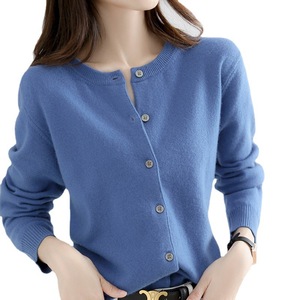 23秋冬の新型韓国風ニットの短い女性の丸首のカーディガンの修身セーターの底のシャツの長袖の大きいサイズのコート