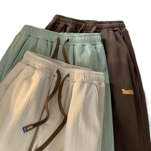 氷糸ストレートパンツ男性夏の薄いファッションブランドの高級感のあるワイドパンツのデザインoversizeゆるいカジュアルパンツ