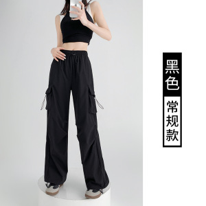 ナイロン工装ズボン女性夏薄手アメリカストレートパラシュートズボン高腰レジャー広脚速乾運動