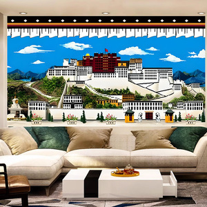 チベットのチベット式民族風の生放送の背景の布のブダラ宮のタペストリーの唐カードの壁の布の聖山の背景の布