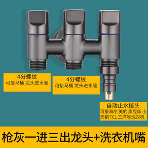 新型銃灰色真鍮一進三出三角弁4分洗濯機蛇口トイレ厚手スプレーガンセット