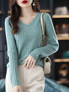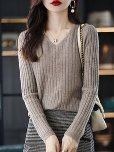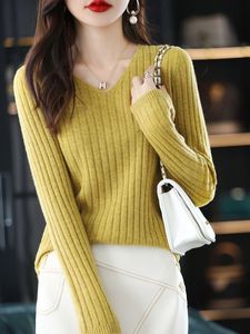 2024春秋の新型vネックの長袖のニットの底のシャツの女性の短いタイプの洋風のセーターの中で保温の上着を掛けます。