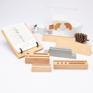 木造の台座の食事の札のはがきの卓上カレンダーの木製の台座のホテルのメッセージボードの木製の台座のアクリルの台座