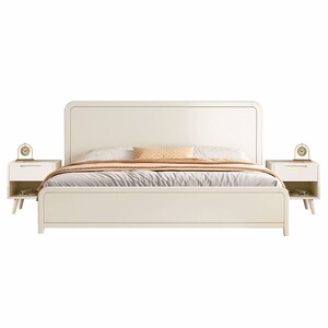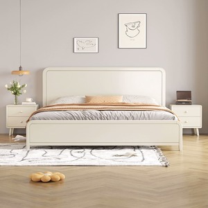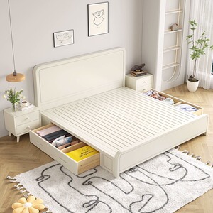 北欧白色全実木ベッド現代シンプルクリームスタイル1.8メートルダブルベッド1.5主臥王女収納ベッド
