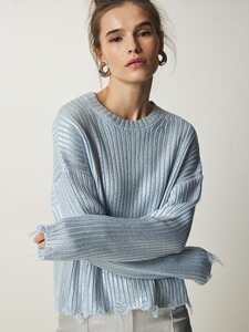 欧米の外国貿易の婦人服の純色はシンプルで、銀のセーターにアイロンをかけます。