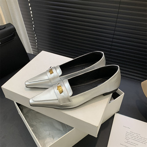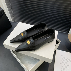 2024年春の平底の小さい方の頭の項の楽福の靴の女性の小さい革靴