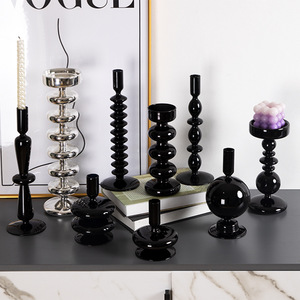 シンプルなレトロなフランス風の中古風なガラスのろうそくの燭台のテーブルの装飾の置物のガラスの燭台